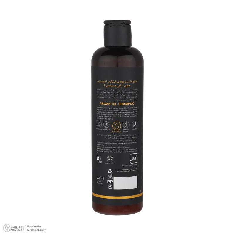 شامپو حاوی روغن آرگان و ویتامین E حجم 270میل آدرا مناسب موهای خشک و آسیب دیده است.